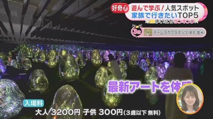 第3位は東京・豊洲の「チームラボプラネッツ」(入場料:大人:3200円、子ども300円、3歳以下無料)。