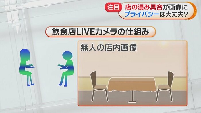 飲食店内のライブカメラの画像をAIで解析。いまどれだけの人がいて、店のどこにいるのかまで、混雑状況がひと目で分かる画像を特設サイトに配信するというものだ。