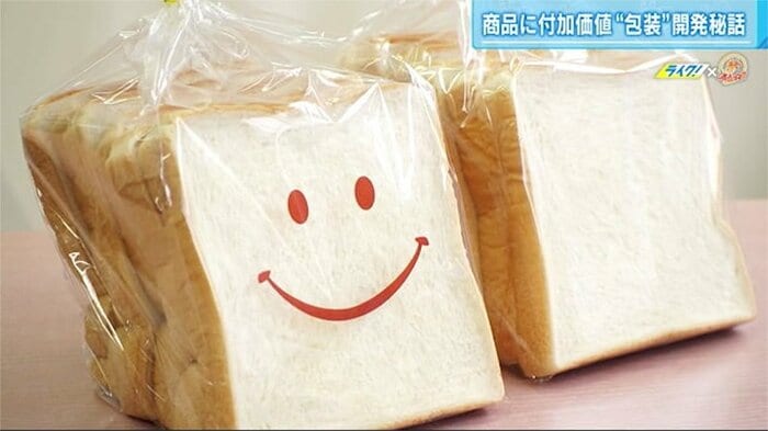 パン屋さんでよく見かける食パン。特に珍しさはないが、包んでいる袋を笑顔のイラストが描かれたものに変えると、思わず手に取りたくなるかわいい食パンに大変身。