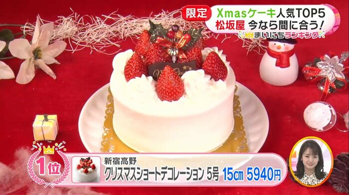 そして、第1位は新宿高野の「クリスマスショートデコレーション 5号」(15センチ 5940円)。