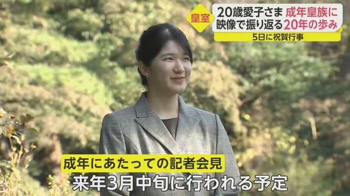 恒例となっている成年にあたっての記者会見は、大学が休みになる2022年3月中旬に行われる予定だ。