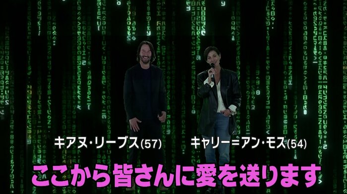 映画の公開に先駆けて、全世界未公開の新映像を解禁するイベントが開かれ、主演のキアヌ・リーブス(57)さん、キャリー=アン・モス(54)さんがアメリカ・ロサンゼルスからリモートで登場した。