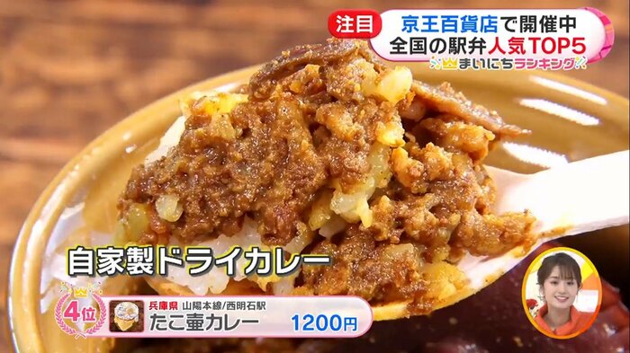 第4位は兵庫県の山陽本線「西明石駅」から「たこ壺カレー」(1200円)。