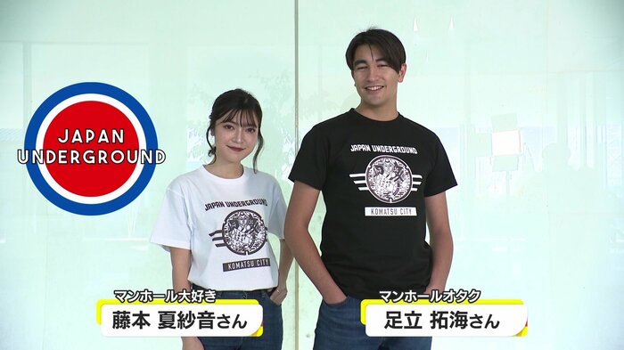 このTシャツをプロデュースしたのは、ジャパンアンダーグラウンドの“マンホールオタク”足立拓海さんと、“マンホール大好き”な藤本夏紗音さん。日本全国を回りながら、ご当地マンホールのデザインを使ったTシャツを作っている。