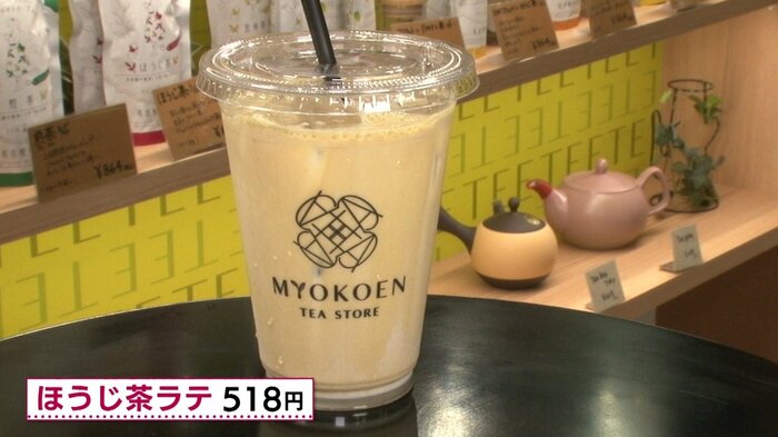 ほうじ茶パウダーとミルクを合わせた「ほうじ茶ラテ」(518円)も、年齢を問わず人気だ。
