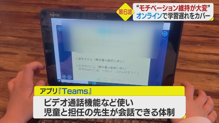 このほか、ビデオ通話などができるアプリ「Teams」も使って、必要に応じて児童が担任と会話できる体制が取られているという。