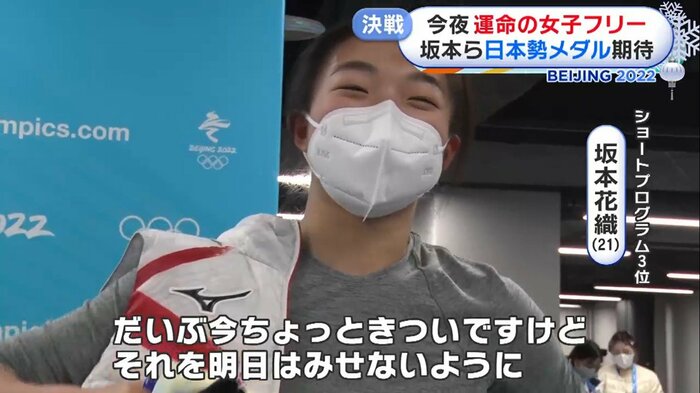 (SP後は)アドレナリンが出過ぎて6時くらいに寝ちゃってたいぶ今ちょっときついですけど、それを明日はみせないようにしっかりリセットしたいです。もっと自分の滑りに集中するだけかなと思っています