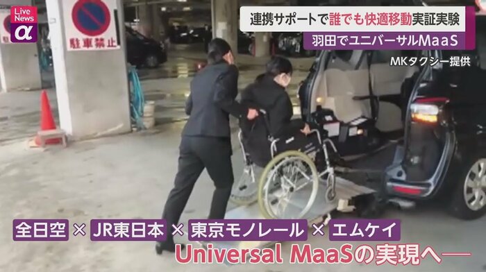 全日空やJR東日本など、公共交通機関の事業者が連携して3日から始まった「ユニバーサルMaaS」の実現に向けた実証実験。
