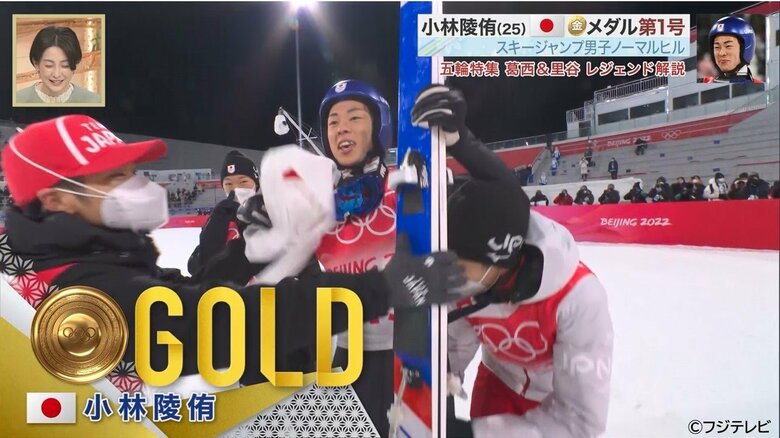 日本ジャンプ界では、98年の長野五輪ラージヒルでの船木和喜さん以来、24年ぶりとなる個人での金メダル。長野以降は5大会金メダル獲得なしの日本ジャンプ界に、再び現れたゴールドメダリストの快挙を間近で見たレジェンド・葛西紀明さん(49)は興奮を隠し切れなかった。
