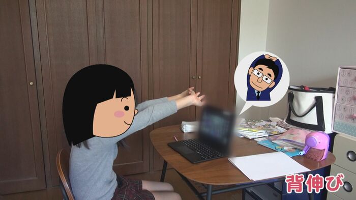 午後2時からは最後の3時間目。宿題で書いた絵を見せあったり、好きな音楽を紹介しあったり、背伸びをしてリモート授業の疲れを癒すなどして、この日は終了した。