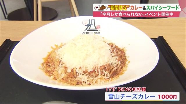 担担麺の人気店が香辛料のノウハウを生かした「雪山チーズカレー」は、17種類のスパイスを配合し北海道の雪山をイメージしてふわふわのチーズをかけた。