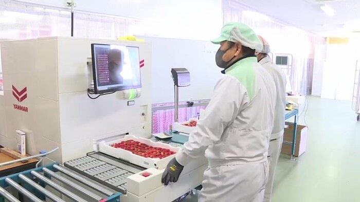 色や形、重量などを瞬時に解析しデータ化して選別。パック詰めの処理能力は従来の倍以上になり、イチゴに触れる機会の減少で品質も向上。イチゴの“スマート農業”が進んでいる。
