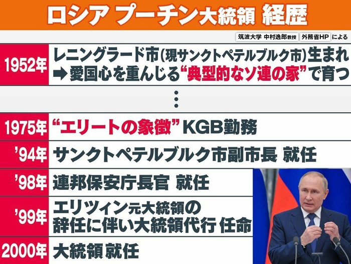 熱心な愛国主義者だった父に育てられたプーチン大統領。大学卒業後には、ソ連の国家保安委員会「KGB」へ。情報員として滞在していたのは、当時ソ連の影響下にあった東ドイツ。その最中の1989年、ベルリンの壁崩壊が起こります。