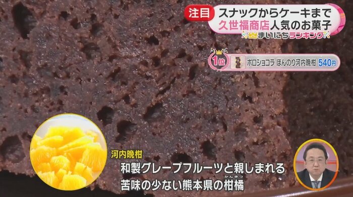 人気のポロショコラのチョコレートケーキとコラボした「ポロショコラ ほんのり河内晩柑」(540円)。