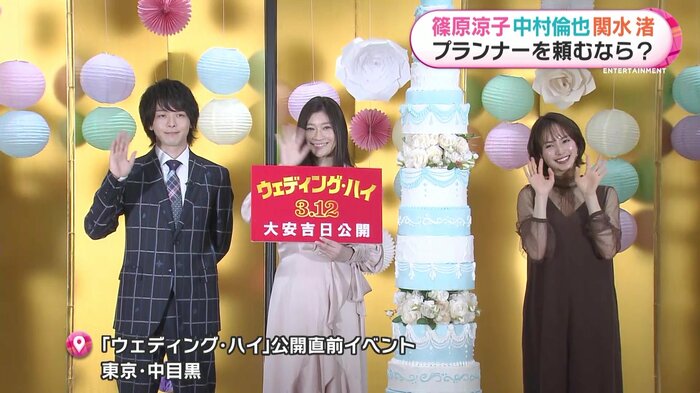 3月12日公開の映画「ウェディング・ハイ」の公開直前イベントが2月28日に行われ、主演の篠原涼子(48)さん、中村倫也(35)さん、関水渚(23)さんらが登場。