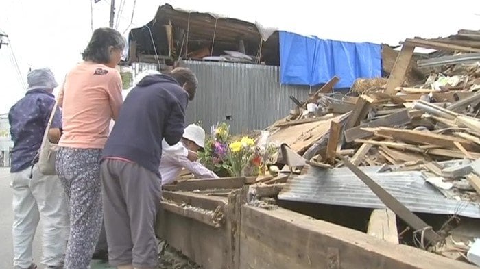 道向かいに住んでいた、幼なじみの女性の月命日。佐々木さんは倒壊した家に献花し、涙を流していた。佐々木さんが慕ってきた女性は自宅の下敷きとなり、亡くなった。突然やってきた地震は寄り添って生きてきた大切な人をも奪った。