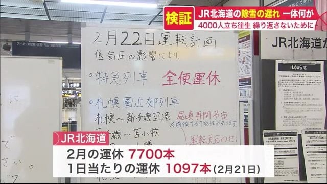 記録的な大雪で列車が運休し、新千歳空港で約4000人が立ち往生する事態になった2月の北海道。JR北海道は除雪の遅れを防ぐことはできなかったのか、検証する。