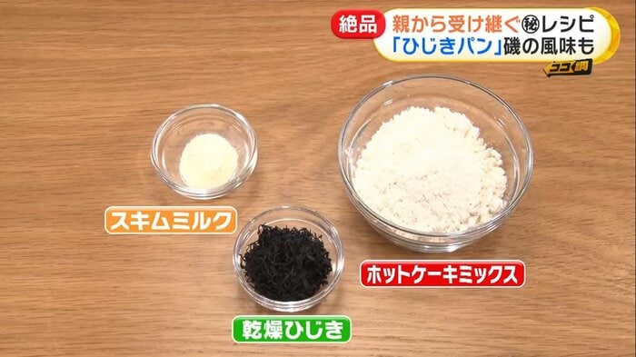 材料はホットケーキミックスとスキムミルク、そして乾燥ひじき。