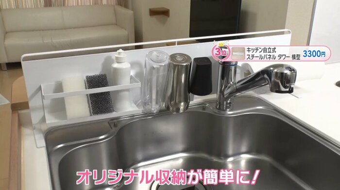 調味料などを自由に配置することができ、シンクの奥でもオリジナル収納が簡単に作れるアイテムだ。