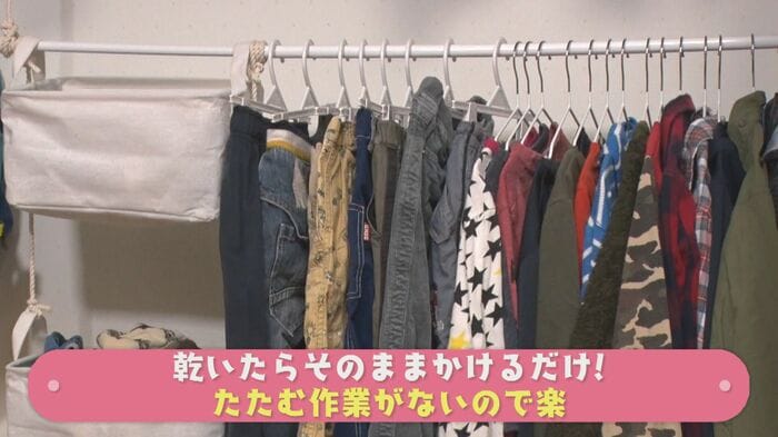 洗濯をして干して乾いたら、そのままここにかけるだけなので、たたむ作業がないので楽