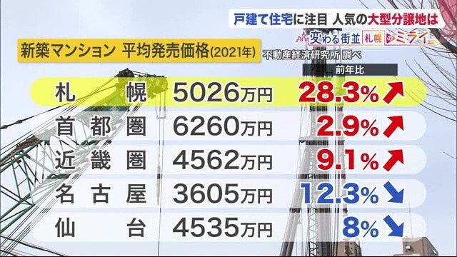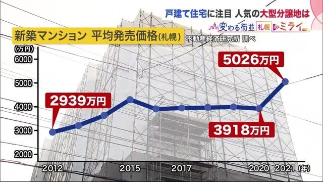 札幌市のマンション価格が高騰している。民間の研究機関の調査によると、新築マンションの平均価格は2021年に5000万円を突破。