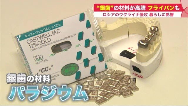 銀歯の材料として使われるパラジウム。世界の生産量の4割をロシアが占めている。情勢悪化に伴う供給への不安から、価格が急上昇しているのだ。