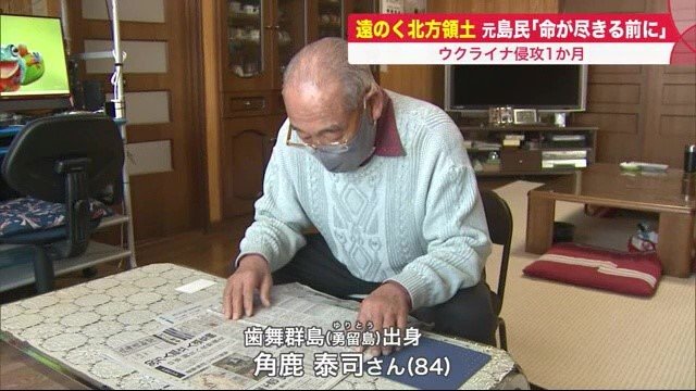 苦悩する人はここにも…77年前、生まれ故郷の歯舞群島勇留島(ゆりとう)を追われた角鹿 泰司(84)さん。