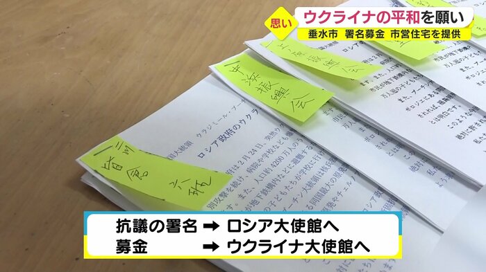 垂水市では、4月1日に発足した「ウクライナを支援する垂水市民の会」が、町内会や職場ごとに署名を集めている。