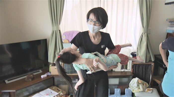 はるかちゃんはチューブで胃に直接栄養を送る“胃ろう”で食事をしていて、他にもたんの吸引やトイレにはじまり、生活の全てで付きっ切りの助けが必要だ。