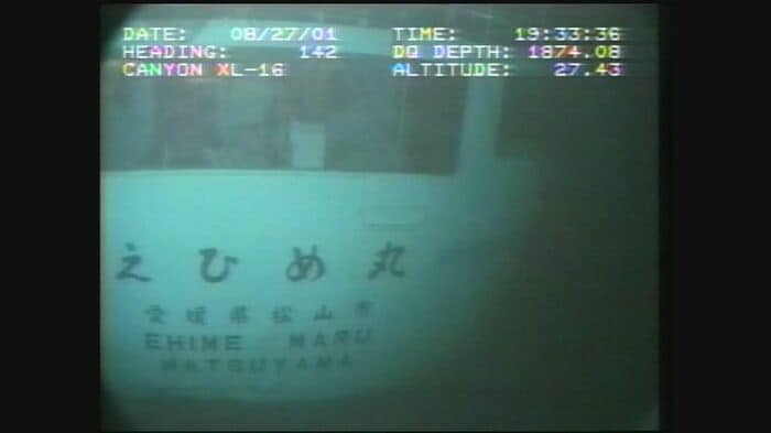 全長58メートル、約500トンのえひめ丸は、ハワイ沖18kmの深海600メートルにほぼ水平に沈んでいた。