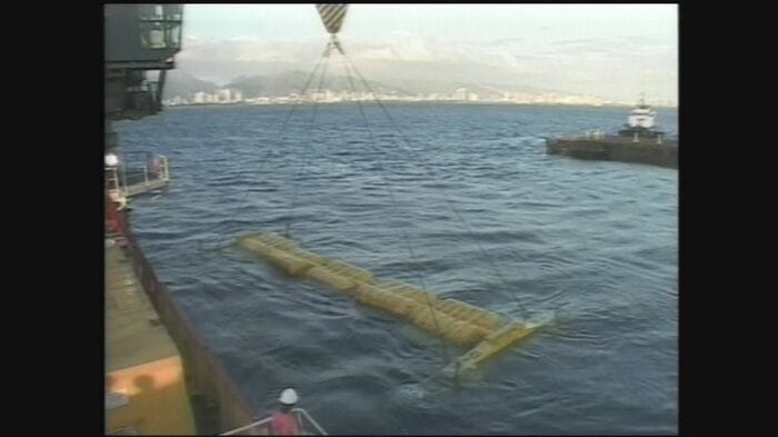 そして作業開始から2カ月後の10月、船首部分にワイヤーを取り受け、船体後方は鉄板で持ち上げる方法でえひめ丸を海底から吊り上げることに成功した。