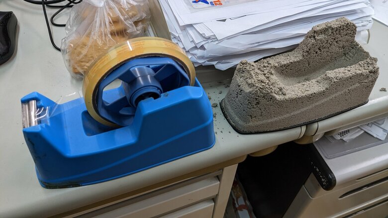 これには同様の経験をした人がいるようで、投稿に寄せられた返信の中にはセロハンテープの台の底が外れたという報告もいくつかあり、出てきた中身は砂の他にモルタル、油粘土、金属などだったという。