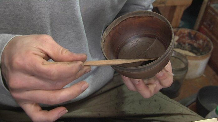さらに強度を上げるため、「漆」と「米糊(こめのり)」、石を粉末状にした「砥の粉(とのこ)」、そして珪藻土(けいそうど)を焼いて精製した「地の粉(じのこ)」を混ぜ、お椀全体に塗る。