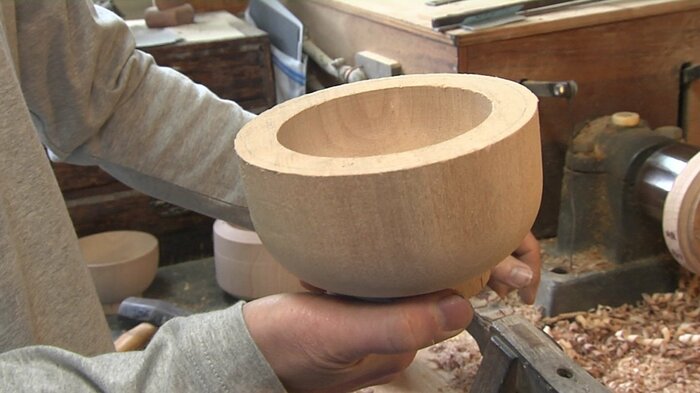 「木を見極め適切な角度で刃を入れる」…粗挽きのお椀を熟練の技で