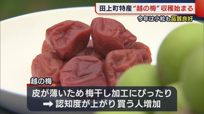 小粒で種が小さく、果肉が多いのが特長の「越の梅」だが、2022年は春先の天候の影響を受けたそうで…