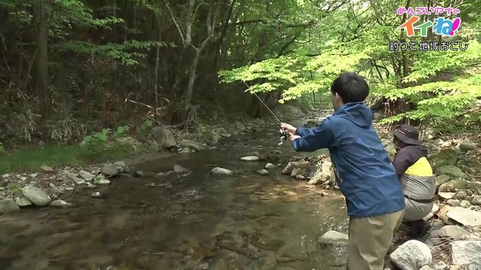 今度は、細田アナウンサーがヤマメ釣りに挑戦した。