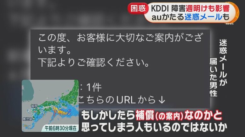 障害を起こしている状態でauをかたるメールというのはちょっと悪質。もしかしたら補償(の案内)なのかと思ってしまう人もいるのではないか