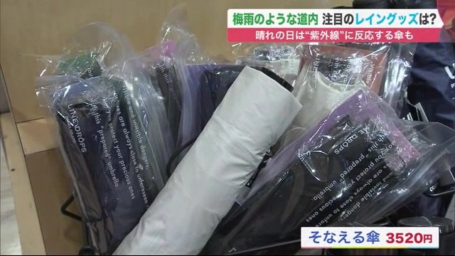 北海道内でも梅雨のような天気が続く中、こうした機能性が高いレイングッズに注目が集まっているが、女性客に話を聞くと「最近雨が多かったり、降ったりやんだりが多いので、かわいい青い花柄のものを選びました」「( 選ぶポイントは)デザインとか軽さとか。好きな柄の傘を持っているとうれしくなります。雨の日でも」と、デザインも重要な様子。