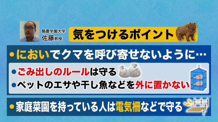酪農学園大学の佐藤喜和教授によると、まずは"におい"で呼び寄せないようにする。