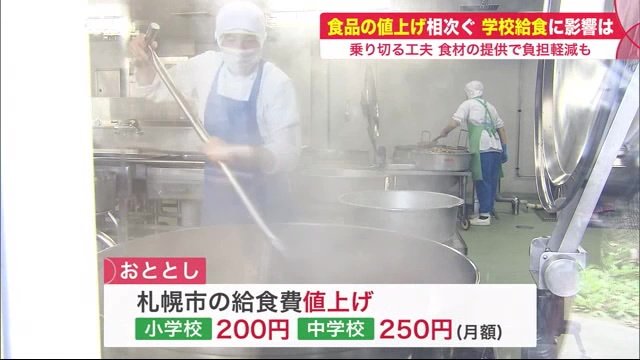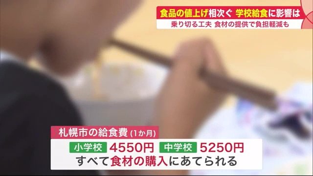 札幌市では2020年に給食費を値上げしたばかりだ。札幌市は食材の高騰を受け、栄養バランスや量などを保つため、保育所や小中学校などに5億1000万円の食材購入費を補助することを決めた。