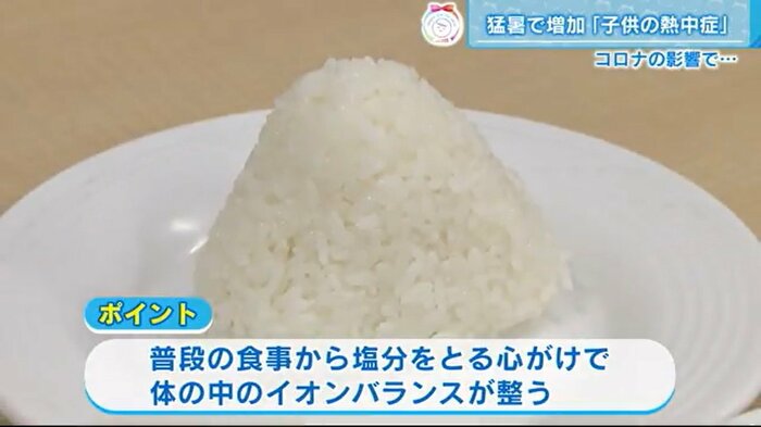 あとは塩分。塩をなめていただくのもいいですが、塩分チャージのあめ、タブレットの味が苦手というお子さんもいらっしゃる。そういう場合は朝に塩のおむすびを食べるとか、普段のお食事から塩分をとるよう心がける方が、体の中のイオンバランスが整うと思います。