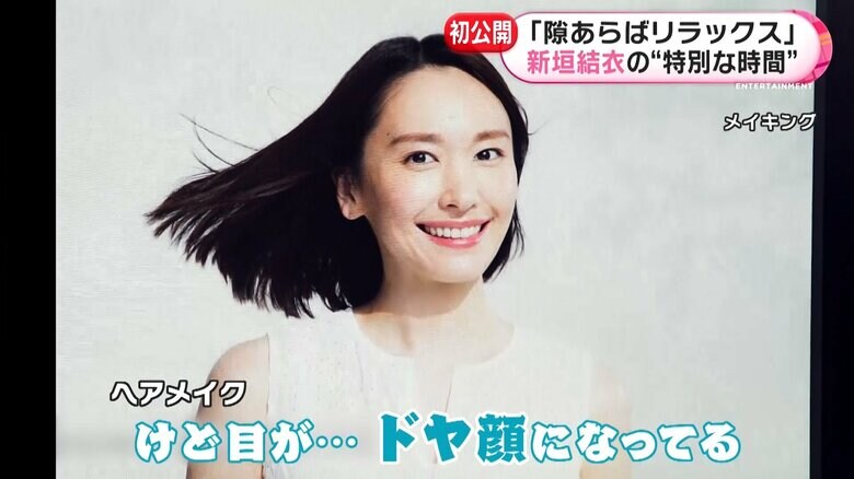 真っ白なノースリーブの衣装で、透明感が際立つ新垣さん。メイキングでは、髪をなびかせ方を生み出すも、ドヤ顔になってしまった自分の写真に思わず笑ってしまう姿が印象的だった。