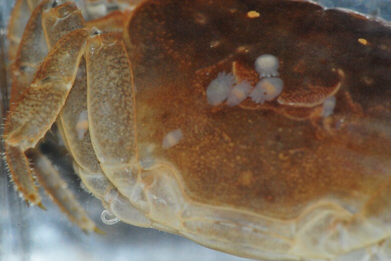 鹿児島大学大学院理工学研究科などの研究チームは、鹿児島県大隅半島の河川中上流域に生息する淡水産カニ類(モクズガニやミカゲサワガニ)と共生する生物を発見したと発表。新種の可能性が高いという。
