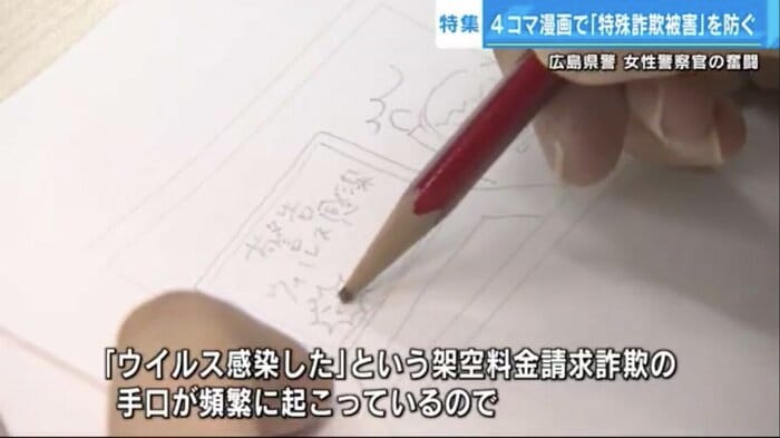増え続ける被害を食い止めようと、広島県警が考案したのは「4コマ漫画」だ。4コマ漫画を制作する女性警察官を取材した。