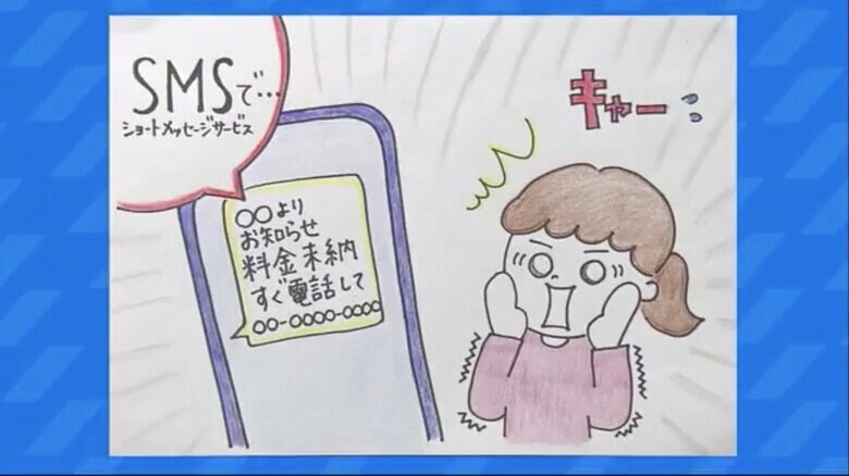 一番最初に描いた4コマ漫画は、実際に自分のスマホに届いたショートメッセージを題材にしました。まだまだ広報できていない手口や、気をつけてもらいたいことを情報発信できていないと思ったのが始まりです