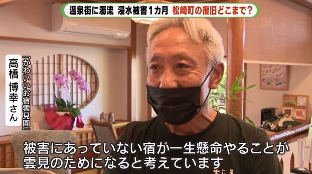 今は穏やかな流れを見せる太田川ですが、1カ月前の台風では大きな被害がでました。土砂を取り除く浚渫(しゅんせつ)作業はすでに完了しています。この地区には30軒の旅館や民宿があり、そのうち24軒が営業を再開。日常を取り戻しつつある人と被害が大きく先を見通せない人、温泉街にはその両方が見られます。
