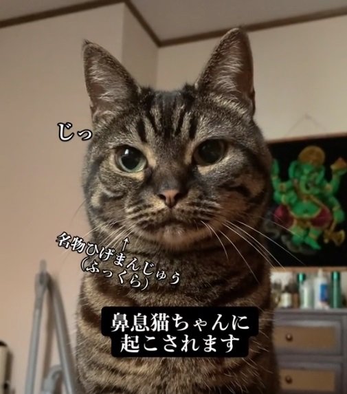 TikTokにはそんな朝の様子がずらりと投稿されており、一度「ニャラーム」で起こされた後、さらに起こしてくるのを撮影しているとのことだが、普段は鳴き声のみや前足でちょんちょんとつついて起こしてくれることが多いよう。