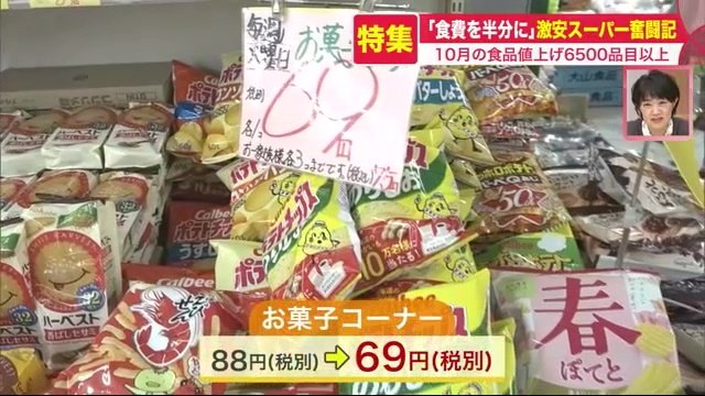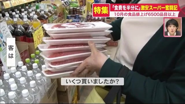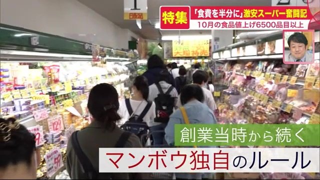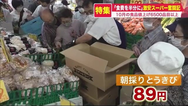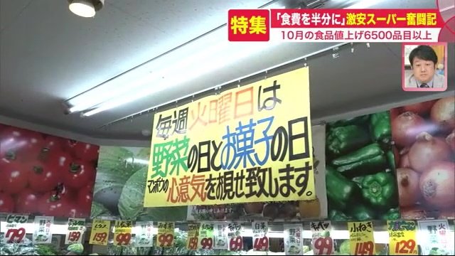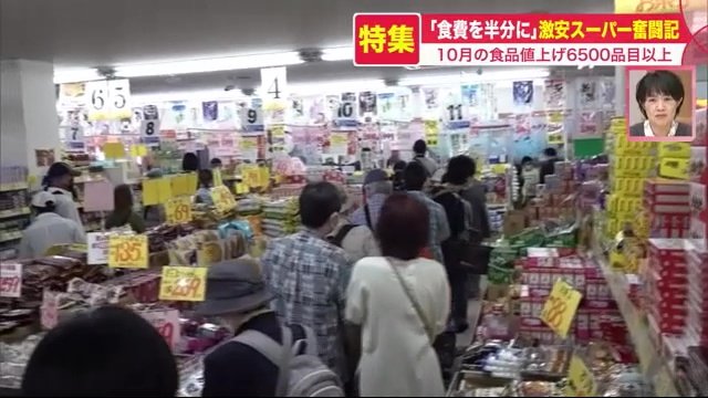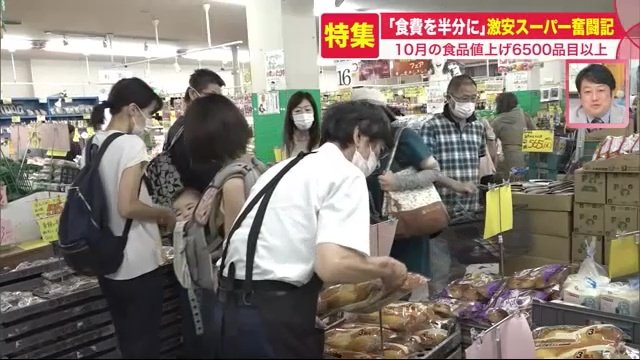 値上げが続く2022年、10月にはさらに6500品目以上もの食品が値上げされた。とどまることを知らない値上げラッシュの中、「食費を半分に」をモットーに、日夜奮闘する激安スーパーの裏側を追った。