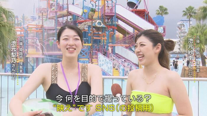 今は2人の全身撮っていました、水着。思い出シェアみたいな感じです、ナガスパ来たよみたいな。最初のうちに撮っといて、終わった途端(プールで)遊ぶみたいな…