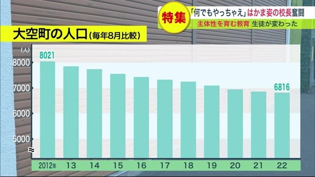 2012年には約8000人いた町民は、過疎化が進み、約6800人まで減少。